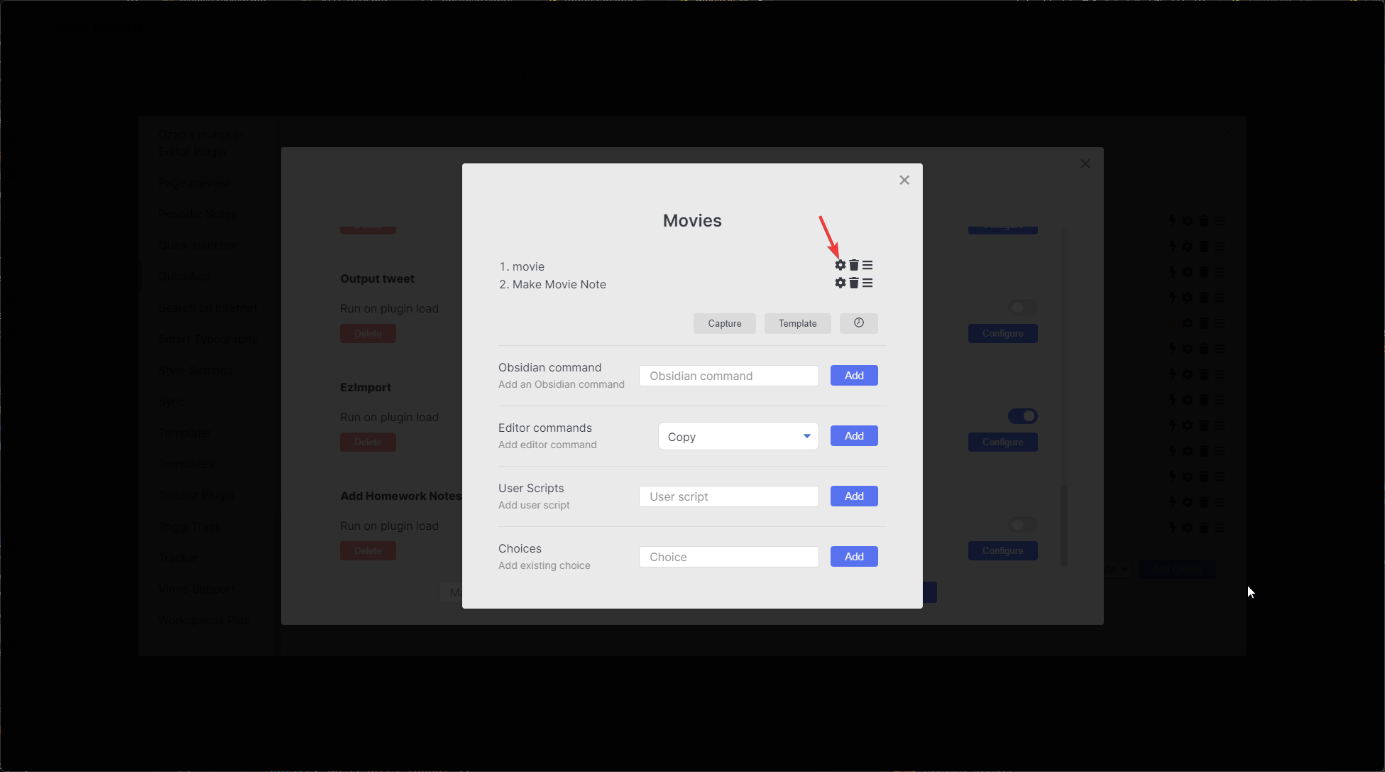 - Open the Macro Manager by opening the QuickAdd plugin settings and clicking
